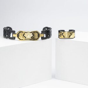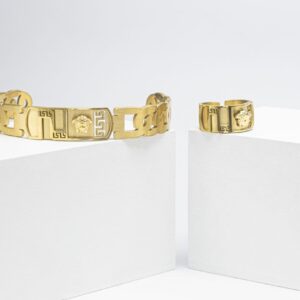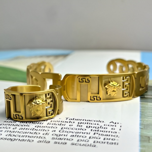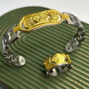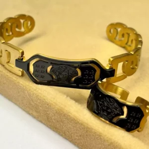 ست دستبند و انگشتر ورساچه استیل خارجی رنگ مشکی طلایی