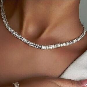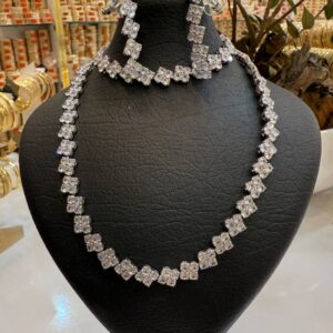 نیم ست زنانه مدل نگین مربعی رنگ نقره ای