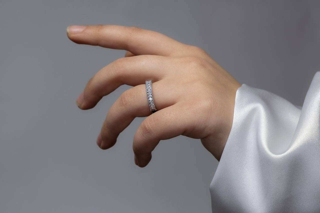 انگشتر “نگین باران”، با ردیفی از نگین‌های ظریف و درخشان که قطرات باران روی انگشت شما می‌نشینند، طراحی شده است. این انگشتر با طراحی ساده و در عین حال شیک، می‌تواند به عنوان یک حلقه نامزدی ظریف، یک حلقه پشت حلقه، یا یک زیور مستقل، جلوه‌ای خاص به دستان شما ببخشد.